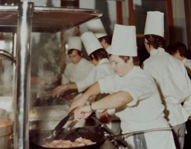 In 1980, after completing my military service, Chef Lippi recommended me to a friend of his, Chef Tullio Monteverde, who ran a restaurant in Bologna after spending ten years in France. At Chef Monteverde's restaurant, I continued to build my culinary skills. He had trained under renowned Chef George Dury at the Élysée Matignon in Paris and had experience working with Auguste Escoffier at the Ritz in London, one of the most revered chefs in history. Chef Monteverde’s restaurant was a blend of Bolognese, Umbrian, and French cuisines, offering everything from fresh pasta and Bolognese meat sauce to truffles and terrines. I spent two years there, which further solidified my love for cooking.